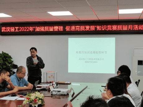 為貫徹落實(shí)湖北省住房和城鄉(xiāng)建設(shè)廳《關(guān)于組織開展2022“質(zhì)量月“活動(dòng)的通知》廳頭20221793號(hào)文的精神、武漢建筑業(yè)協(xié)會(huì)建筑檢測(cè)分會(huì)《關(guān)于開展2022“質(zhì)量月”活動(dòng)的通知》精神、為促進(jìn)工程質(zhì)量不斷提升,營(yíng)造我公司“質(zhì)量至上”的良好氛圍,樹立質(zhì)量第一的理念意識(shí),我公司以“質(zhì)量月”為契機(jī),根據(jù)本公司發(fā)展需求,為規(guī)范管理,以實(shí)際行動(dòng)迎接黨的二十大勝利召開,將質(zhì)量管理活動(dòng)抓實(shí)抓牢,強(qiáng)調(diào)履職盡責(zé),為公司平穩(wěn)有序發(fā)展打下堅(jiān)實(shí)基礎(chǔ)。武漢輕工工程技術(shù)有限公司(以下簡(jiǎn)稱武漢輕工)于2022923日組織開展了“武漢輕工2022年加強(qiáng)質(zhì)量管理促進(jìn)高質(zhì)發(fā)展”知識(shí)競(jìng)賽質(zhì)量月活動(dòng)。